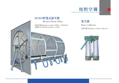 FU032转笼式滤尘器 纺织空调 Rotary Drum Filter 集尘器 过滤风量 Filtering air volume: 29400~196000m3/h Dust-collector 过滤阻力 Filtering resistance: ≤400Pa 过滤风量 Filtering air volume: 1000 m3/h